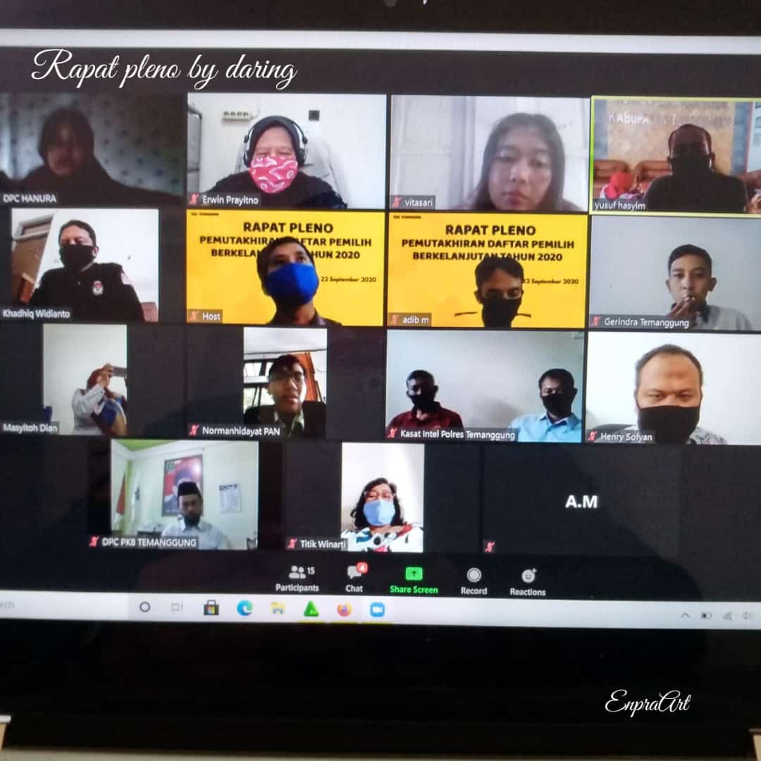 Temanggung, 22 September 2020. Bawaslu Kabupaten Temanggung mengikuti Rapat Pleno Pemutakhiran Daftar Pemilih Berkelanjutan Tahun 2020.
