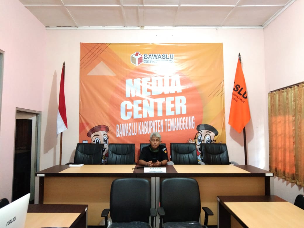 Temanggung, 19 Juni 2020, bertempat di Media Center Bawaslu Kabupaten Temanggung, Murti Anggono, Koordinator Divisi Penyelesaian Sengketa Bawaslu Kabupaten Temanggung mengikuti video conference dengan Bawaslu Provinsi Jawa Tengah dan Bawaslu Kab/Kota se-Jawa Tengah dalam rangka Koordinasi Mekanisme Musyawarah Penyelesaian Sengketa Pemilihan Tahun 2020.
