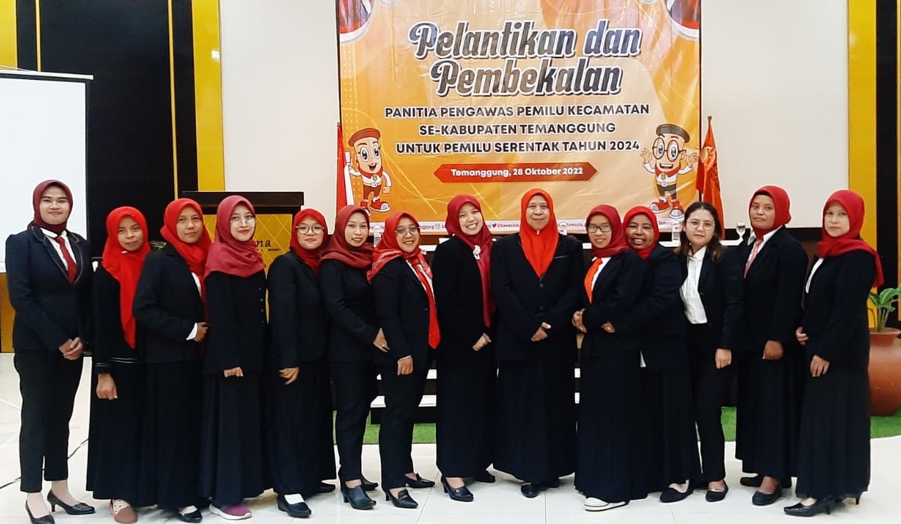 Humas Bawaslu Temanggung. Temanggung - Proses recruitment Panitia Pengawas Pemilu Kecamatan Kabupaten Temanggung Tahun 2022, sudah berlangsung sejak tanggal 10 September 2022. Proses recruitment dilakukan secara terbuka, seluruh warga masyarakat yang memenuhi syarat diperkenankan untuk mendaftar. Hingga proses pelantikan pada tanggal jum'at, 28 Oktober 2022, terpilih 60 orang Panitia Pengawas Pemilu Kecamatan yang akan bertugas di 20 Kecamatan di Kabupaten Temanggung. Komposisi Panitia Pengawas Pemilu Kecamatan diwakili oleh 12 Perempuan yang bertugas di 9 Kecamatan di Kabupaten Temanggung. Hal tersebut menunjukkan bahwa Bawaslu Kabupaten Temanggung turut mendukung Gender Equity (Keadilan Gender) dalam pelaksanaan pengawasan pemilu di tingkat kecamatan.