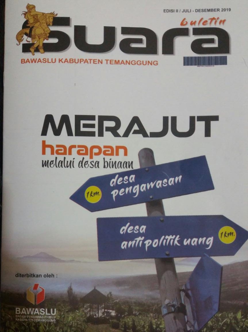 Temanggung, HumasBawaslu-Buletin Suara Bawaslu merupakan potret kegiatan-kegiatan yang dilaksanakan oleh Bawaslu dalam bentuk artikel publikasi, baik pra pasca maupun pelaksanaan penyelenggaraan Pemilu Tahun 2019. Bawaslu menganggap bahwa salah satu dari pertanggung jawaban mengenai keterbukaan informasi terhadap publik disamping amanat UU Nomor 7 Tahun 2017 tentang Pemilu maka di pandang perlu untuk menerbitkan Buletin. “Buletin ini diberi nama “Suara Bawaslu”, Buletin adalah publikasi oleh Bawaslu yang mengangkat perkembangan suatu topik atau aspek kepemiluan yang diterbitkan serta dipublikasikan secara teratur, Buletin Suara Bawaslu ini sudah terbit dua kali selama tahun 2019, durasi penerbitan 6 bulan sekali, yaitu bulan Januari-Juni 2019 edisi I, sedangkan Bulan Juli-Desember 2019 edisi ke II, adapun isi konten dalam buletin ini antara lain suara redaksi, suara utama, suara giat Bawaslu, suara opini, suara Bawaslu, Bawaslu dalam Foto, Kopi Bawaslu, isi dari buletin sebanyak 30 halaman,. Sedangkan struktural redaksi Buletin Suara Bawaslu meliputi Dewan Redaksi yang di jabat oleh 5 (lima) Komisioner Bawaslu Temanggung, Penanggung Jawab adalah Koordinator Sekretariat, Redaktur : Anis Setyawan, Yusiana Pambaruni, Komar. Desing grafis : Aditiyo, HW, Adi Faizal. Lay Out : M. Baehaki Choirul Anwar, M.Nur Fadli. Fotografer : Anggit NF, Ardi Restu, Wahyudi. Sekretariat : Dwijayanti, Herlina, Anggun Sinta, Tunggal Dewi, Ari Sofiyana, Ade Bagus Faisal. Dan Distributor : Puji Ariyanto, Sari Partudi dan Rusman Wardoyo. Adapun alamat redaksi : Jl Diponegoro, 28 Temanggung, Jawa Tengah”. Tukas Mamix Sulistiyoningrum, S.Pi, M.Pd.,selaku penanggung jawab redaksi “Launching Buletin telah dilaksanakan kemarin bersamaan dengan launching PPID bawaslu dalam kegiatan Gelar Budaya Bawaslu Temanggung pada Tanggal 22 Desember 2019 di taman Wiropati Tlogomulyo” lanjut Mamix yang juga menjabat Koordinator Sekretariat Bawaslu