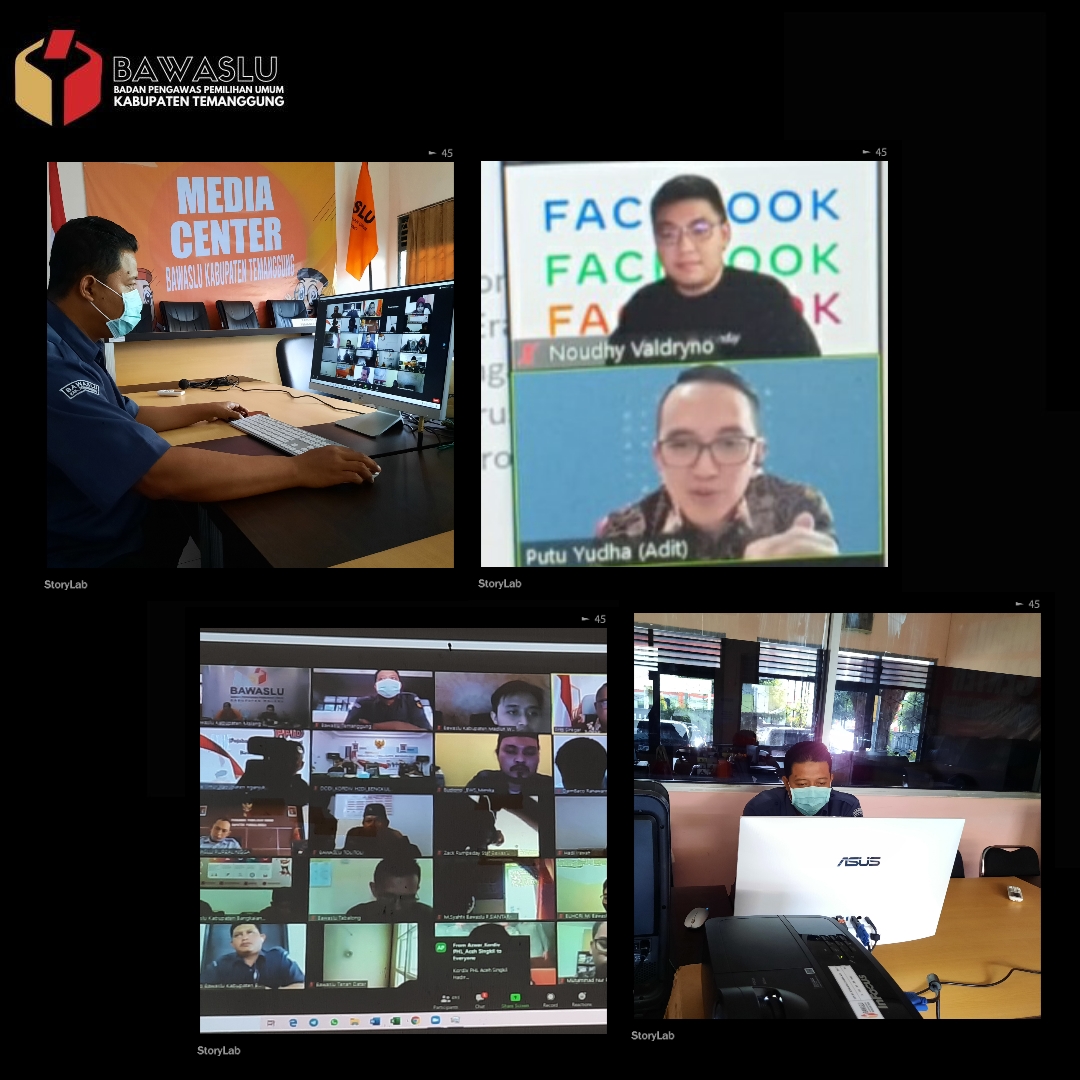 Temanggung-Koordinator Divisi Hukum dan Humas Kabupaten Temanggung mengikuti rapat via daring dalam rangka pengawasan iklan kampanye dan dana kampanye di facebook pada pilkada serentak tahun 2020. Diskusi ini diselenggarakan oleh Bawaslu RI bekerja sama dengan Facebook.Koordinator Divisi Hukum, Humas, Data dan Informasi Bawaslu RI, Fritz Edward Siregar menjelaskan bahwa akan muncul beberapa kemungkinan ketika Bawaslu melakukan pengawasan di media sosial. Apakah yang termuat dalam media sosial tersebut mengandung unsur pelanggaran atau tidak. Bawaslu akan melakukan Memorandum of Action (MoA) baik dengan KPU, Kominfo dan Kepolisian yang memfokuskan pada aksi penelusuran terhadap temuan Bawaslu terkait pelanggaran di medsos. Fritz mengapresiasi langkah dari facebook yang membuka besaran biaya iklan politik. Facebook sendiri telah mengatur bagaimana prosedur beriklan politik Pilkada 2020 di tengah pandemi Covid 19 dan ini memudahkan kerja dari jajaran pengawas pemilu. Kita akan tahu biaya iklan paslon dari facebook, yang membayar dan membiayai juga kita bisa melihat apakah iklan tersebut sesuai dengan aturan atau tidak. Putu Swaditya Yudha selaku narasumber dari facebook menambahkan bahwa dalam membangun kepercayaan dengan pendukung terdapat 3 hal yaitu otorisasi iklan, transparansi halaman, dan pustaka iklan. Iklan dalam facebook dapat membantu memperkuat pesan agar tersampaikan kepada setiap orang sehingga memberikan kesempatan untuk mempromosikan calon.