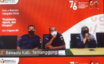 Humas Bawaslu Temanggung – Bertempat di Media Center Bawaslu Kabupaten Temanggung, Ketua sekaligus Anggota Bawaslu Kabupaten Temanggung mengikuti webinar yang diselenggarakan oleh Bawaslu Provinsi Jawa Tengah dengan tema Perjalanan, Kiprah dan Harapan 3 Tahun Bawaslu Kabupaten/Kota.