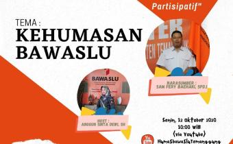 Temanggung, Senin, 12 Oktober 2020 Bawaslu Kabupaten Temanggung menyelenggarakan kegiatan diskusi melalui media Youtube.